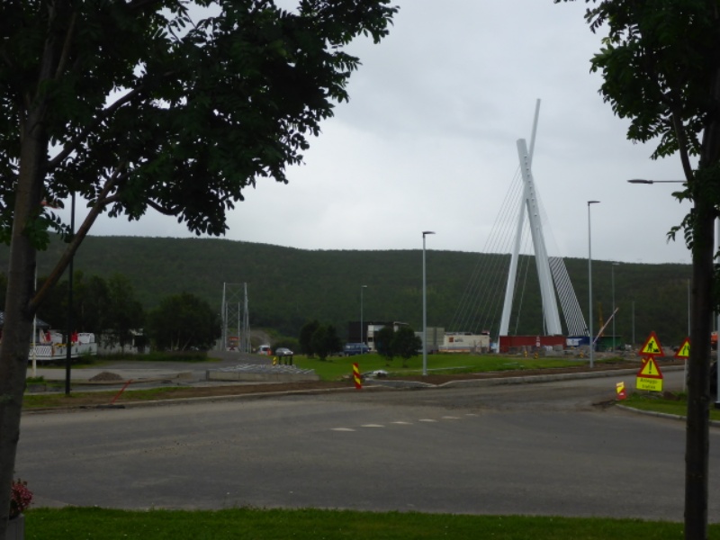 Der hochaufragende Pylon der fast fertiggestellten Brücke ist die neue Landmarke von Tana bru.