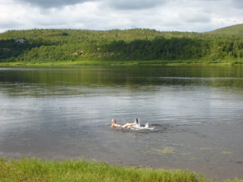 Auf dem Weg nach Nuorgam dann mal wieder ein Beweis, dass ab und zu die Sonne geschienen hat. Aber es waren immer seltenere Momente und die Temperaturen stand im krassen Gegensatz zu denen, unter denen die Mitteleuropäer zu leiden haben.